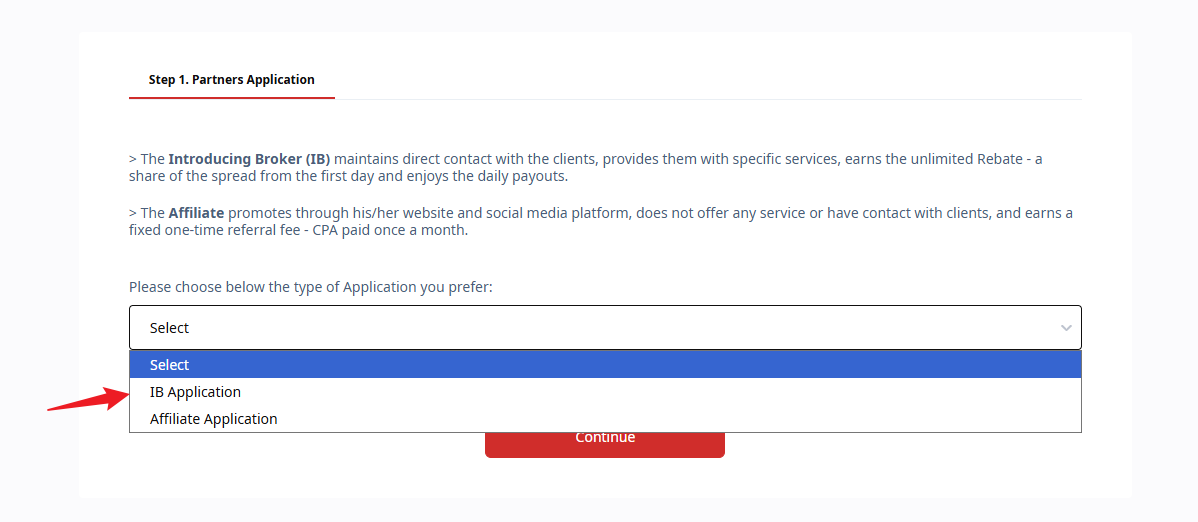 - Click “Request to Become an IB / Affiliate.”
